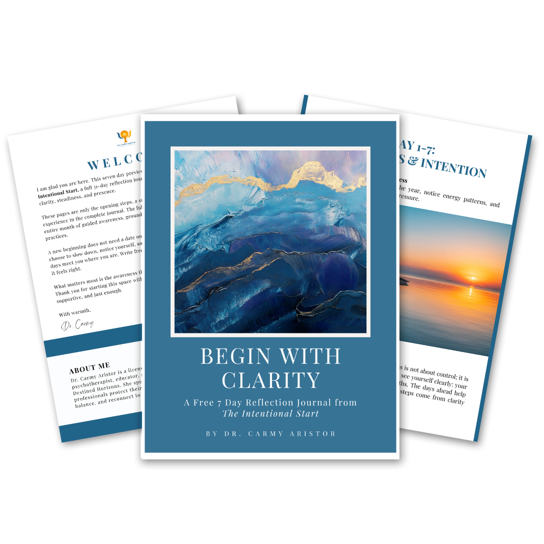 I created The Intentional Start because so many helpers begin their year already stressed, already stretched, and already forgetting their own voice. These seven days of the journal Begin with Clarity are your invitation to breathe, reflect, and step into the year with calm clarity.